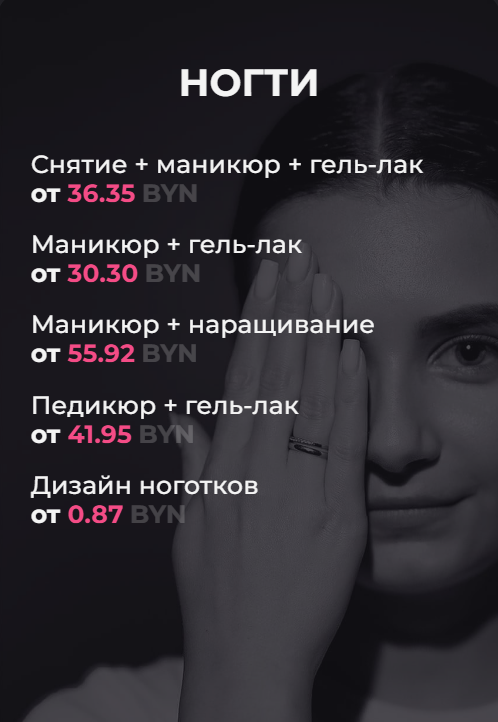 Это не просто салон, это место, где каждая женщина может насладиться вниманием к своему внешнему облику. Опытные мастера позаботятся о состоянии вашей кожи, ваших волос и ногтей, создавая гармоничный и ухоженный образ. В руках профессионалов даже мельчайшие детали становятся важными акцентами вашей неповторимой красоты.